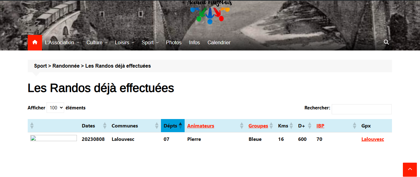 Il y a déjà une soixantaine de randonnées enregistrées. Merci aux meneurs qui organise une rando de faire passer le fichier gpx à : accueil.muzolais@gmail.com