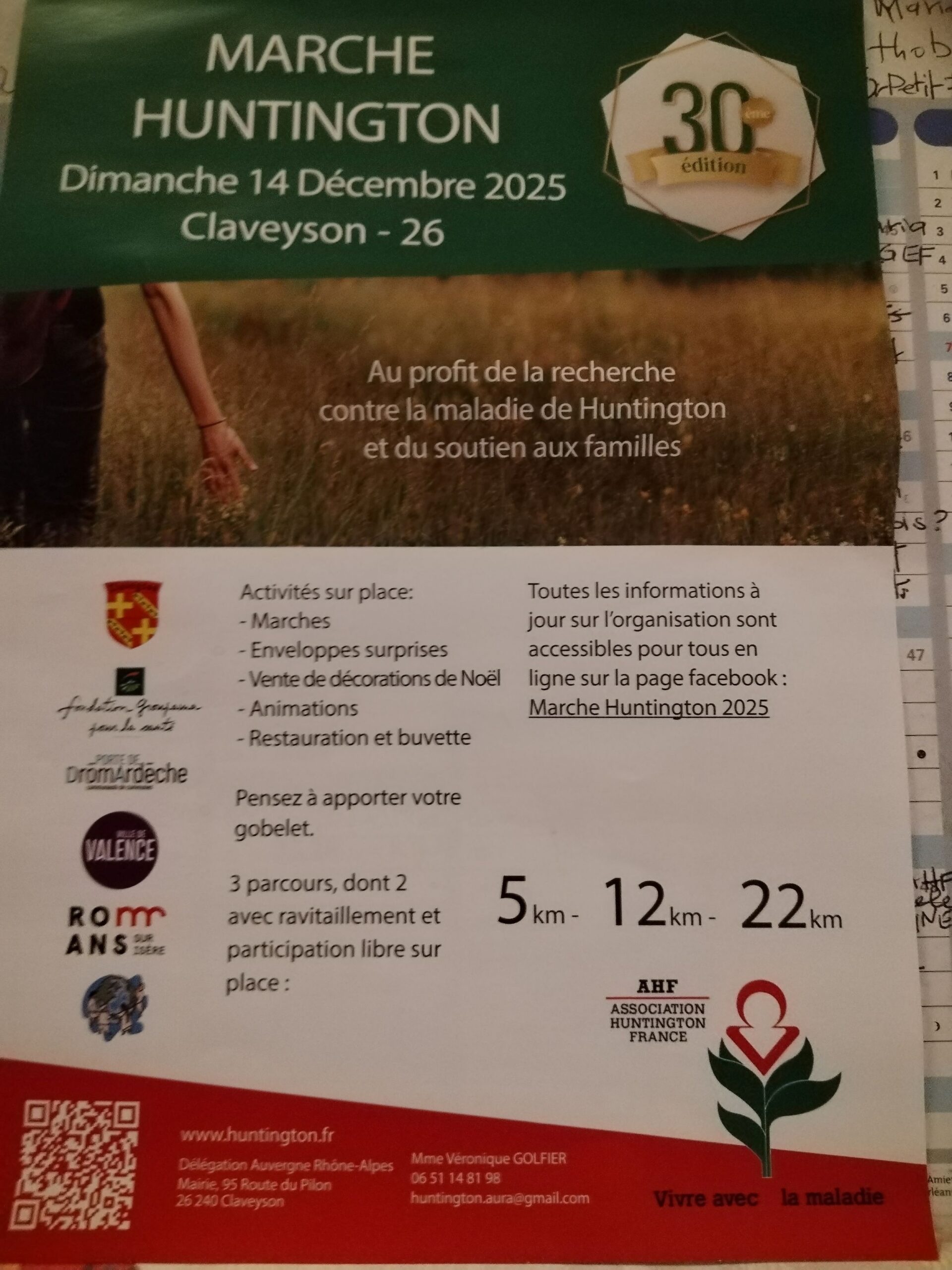 « Tous les Évènements Rando Claveyson marche HUNTINGTON 14 décembre 8h00:17h00 « Rando bleue Mercurol Rando orange Mauves » Ajouter au calendrier Google Agenda iCalendar Outlook 365 Outlook Live Détails Date : 14 décembre Heure : 8h00:17h00
